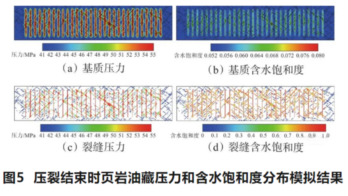 3)压裂液主要分布于压裂缝及其周边的天然裂缝和基质中,闷井阶段进入周边基质,基质毛管阻力作用导致压裂液返排率较低,但体积压裂后的页岩油藏动用范围和程度较好。