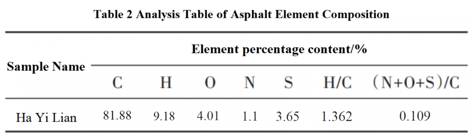 2.1.2 Analysis of Asphalt Element Composition